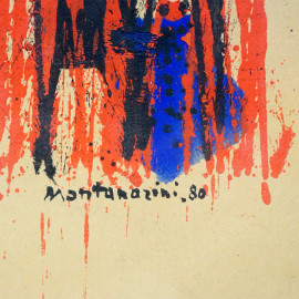Senza titolo, tecnica mista su carta, cm 55,5x41,5, firmato Montanarini, entro cornice.