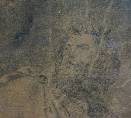 Stampa raffigurante episodio biblico, cm 62x75, XIX secolo, entro cornice, (difetti)
