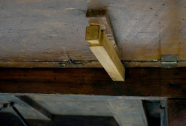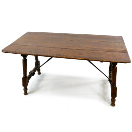 Tavolo a bandelle costruito con elementi antichi, quattro gambe tornite e traverse a rocchetti, misure del tavolo chiuso cm 79x72x157, (difetti)