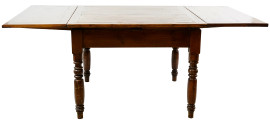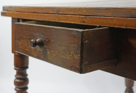 Tavolo allungabile, un cassetto nella fascia, quattro gambe tornite, XX secolo, cm h 81.5x109.5x110, (difetti)