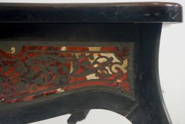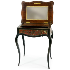 Toeletta stile Boulle, in legno ebanizzato con intarsi in metallo dorato e finta tartaruga, poggiante su quattro gambe mosse, fine XIX secolo, cm h 73x59x42, (difetti)