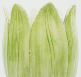 Vaso in maiolica smaltata a foggia di fiore, XX secolo, cm h 27x14,5
