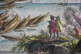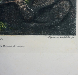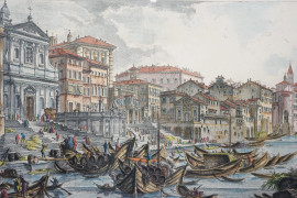 Veduta del Porto di Ripetta, stampa acquerellata, cm 65x85, XX secolo, entro cornice.