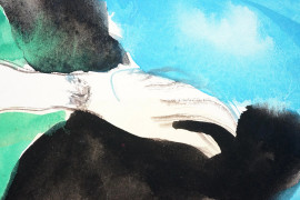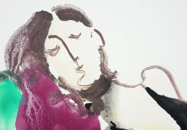 Ritratto di donna che dorme, tempera su cartoncino, firmato in basso a sinistra, cm 30x40,2