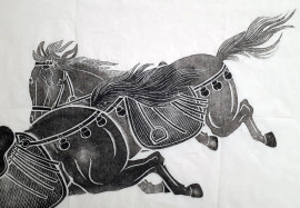 Cavalli di Arte Orientale su carta di riso, cm 67x67