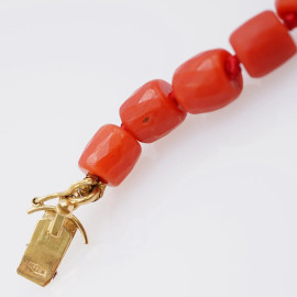 Collana in corallo sfaccettato con chiusura in oro giallo 18 kt, lunghezza cm 52,5, peso gr.46,9, (imperfezioni)