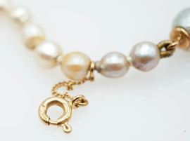 Collana in perle di fiume con chiusura in oro giallo 18 kt, lunghezza cm 46, peso gr. 25,4