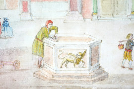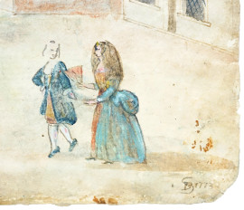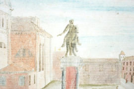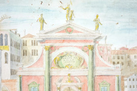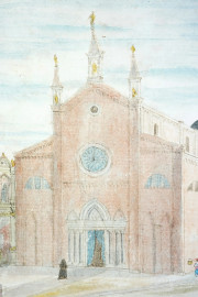 Coppia di acquerelli raffiguranti La veduta del campo Santi Giovanni e Paolo e La veduta della chiesa di San Tomà, siglati e datati in basso a destra, cm 26,3x37,4, (difetti)