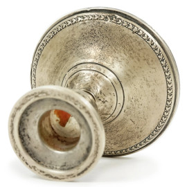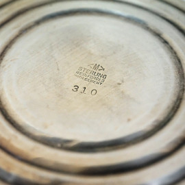 Coppia di candelieri in argento sterling, appesantiti, XX secolo, cm h 8, (difetti)
