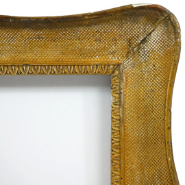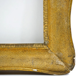 Cornice a guantiera napoletana in legno intagliato e dorato, XIX secolo, ingombro cm 72x61, battente cm 57x44 (difetti)