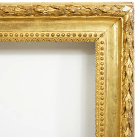 Cornice del XIX secolo, in legno intagliato e dorato, ingombro cm 137x100, battuta cm 123,5x86, (difetti)