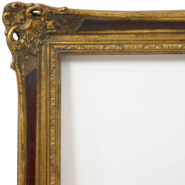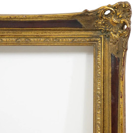 Cornice del XX secolo, in legno e pastiglia, ingombro cm 78x96, battuta cm 65,5x83,5, (difetti)