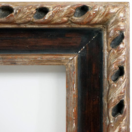 Cornice in legno dipinto ed argentato a mecca, XX secolo, ingombro cm 73x63,5, battente cm 50x41, (difetti)