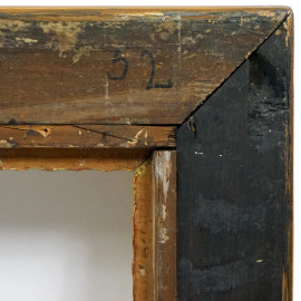 Cornice in legno dorato, fine XIX-inizi XX secolo, ingombro cm 103,5x71, battente cm 87x54,5, (difetti)