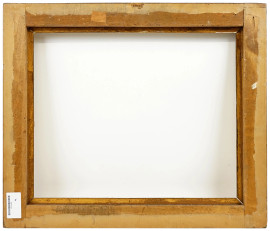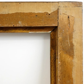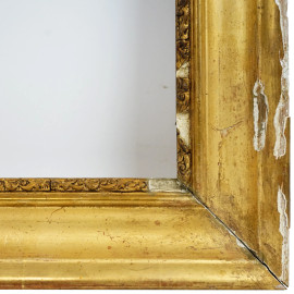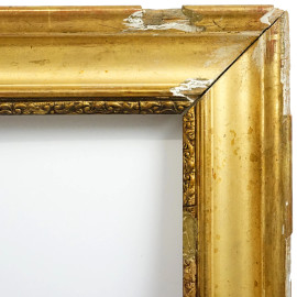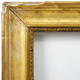 Cornice in legno dorato, XIX-XX secolo, profilo interno a motivi fogliacei, battuta esterna liscia, ingombro cm 59,5x50, battente cm 48,5x39,5, (difetti)