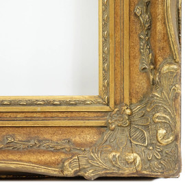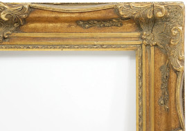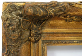 Cornice in legno e pastiglia dorata, XX secolo, ingombro cm 71x81, battuta cm 50x60, (difetti)