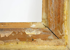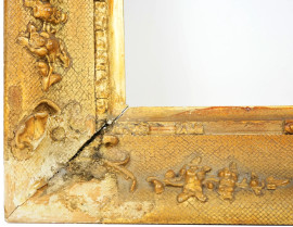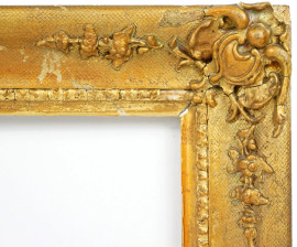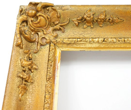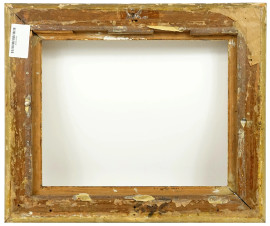 Cornice in legno e stucco dorato, XX secolo, ingombro cm 45x39, battuta cm 34,5x28, (difetti)