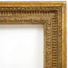 battuta interna scolpita a foglie e ovoli seguita da gola scanalata e profilo a nastro ritorto, battuta esterna liscia