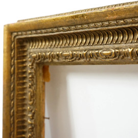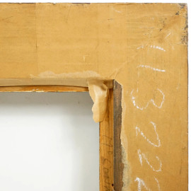 Cornice in legno e stucco dorato, XX secolo, ingombro cm 72,5x97, battente cm 59x83,5, (difetti)