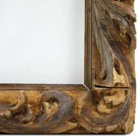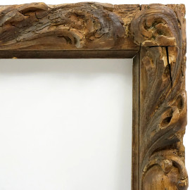 Cornice in legno intagliato a foglie d'acanto, XVII secolo, ingombro cm 74x52,5, battuta cm 61x39, (difetti)