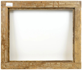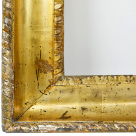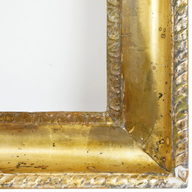 Cornice in legno intagliato e dorato a mecca, XIX secolo, ingombro cm 72x60, battente cm 59x48, (difetti)