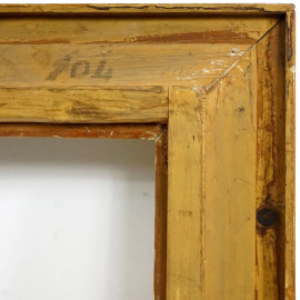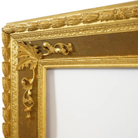 Cornice in legno intagliato e dorato, fine XIX secolo, ingombro cm 91x115, battuta cm 63,5x86, (difetti)
