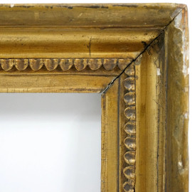 Cornice in legno intagliato e dorato, XIX secolo, ingombro cm 38x30, battente cm 26x18,5