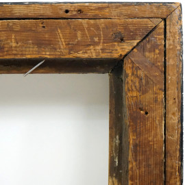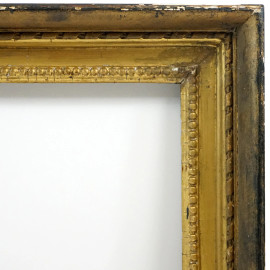 Cornice in legno intagliato e dorato, XIX secolo, ingombro cm 74x57, battente cm 62x45,5, (difetti)