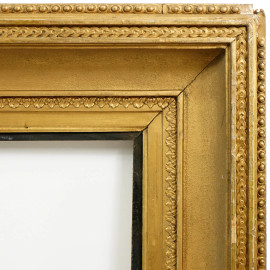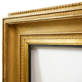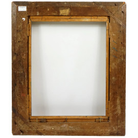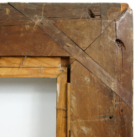 Cornice in legno intagliato e dorato, XIX secolo, ingombro cm 97x82, battente cm 58,5x76
