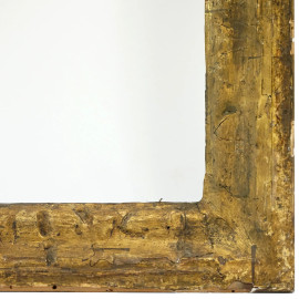 Cornice in legno intagliato e dorato, XVIII secolo, ingombro cm 110x84, battente cm 103x77,5, (difetti)