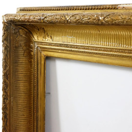 Cornice in legno intagliato e stucco dorato, fine XIX secolo, ingombro cm 125x104, battente cm 94x74 (difetti)