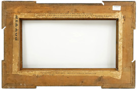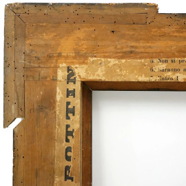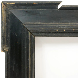 Cornice in legno intagliato ed ebanizzato, XIX secolo, ingombro cm 62,5x96, battuta cm 37x70,5