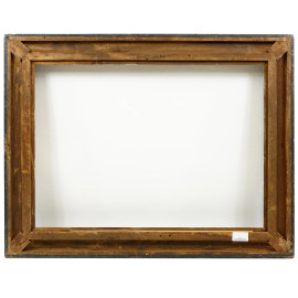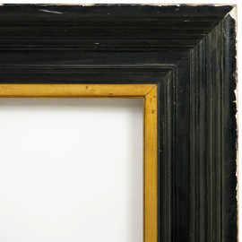 Cornice modanata in legno ebanizzato con profilo interno dorato, XX secolo, ingombro cm 104x80, battente cm 61x85, (difetti)