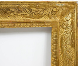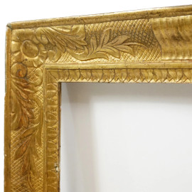 Cornice napoletana in legno intagliato, inciso e dorato, XIX secolo, ingombro cm 65x86, battente cm 51,5x72,5