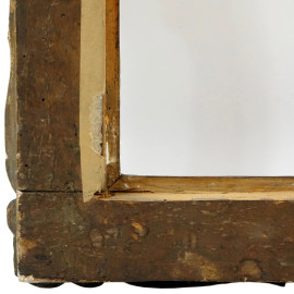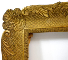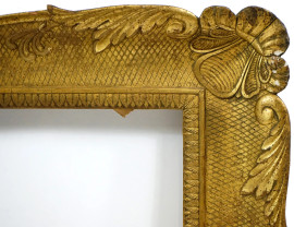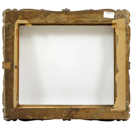 Cornice napoletana in legno intagliato, inciso e dorato, XIX secolo, ingombro cm 62x71, battente cm 44,5x53,5, (difetti)