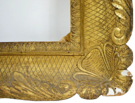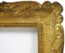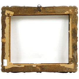 Cornice napoletana in legno intagliato, inciso e dorato, XIX secolo, ingombro cm 62x71, battente cm 44,5x53,5