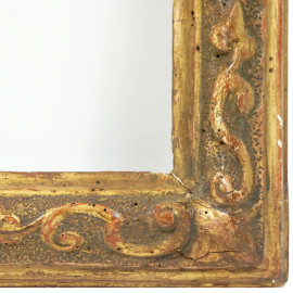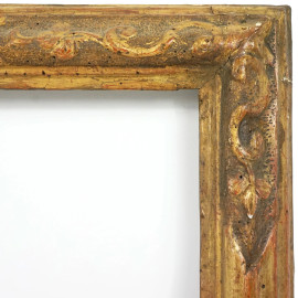 Cornice veneziana del XVIII secolo, in legno intagliato e dorato, ingombro cm 47x38, battuta cm 37,5x29