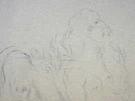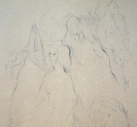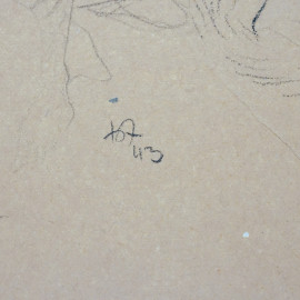 Figure femminili e un vescovo, matita su carta, firmato e datato Tot '43, cm 31,7x21,5