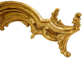 Fregio sopraporta in legno intagliato e dorato, fine XIX- inizi XX secolo, cm 34x98