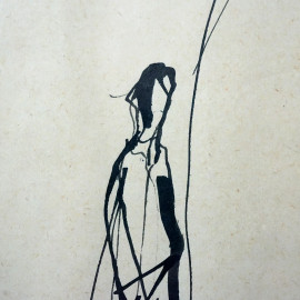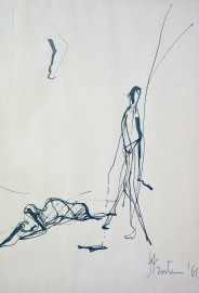 Giovanni Stradone (1911-1981), Lo straccivendolo, matita e penna su carta, cm 31,5x23,1, entro cornice