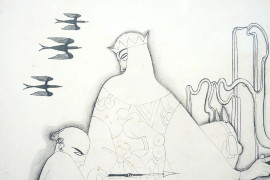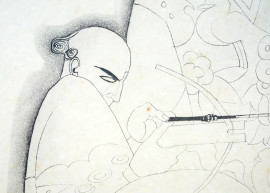 Illustratore Art Nouveau, disegno a china nera su carta, XIX-XX secolo, cm 35,2x28, entro cornice