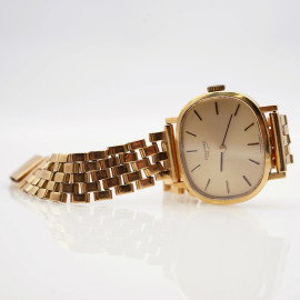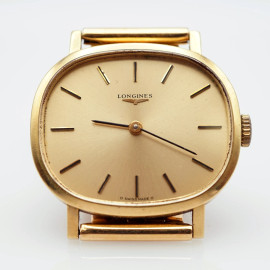 Longines, orologio da polso in oro giallo 18 kt, con quadrate ovale cm 2,6x3,2, peso lordo gr. 57,7, (difetti, meccanismo da revisioanre)