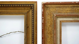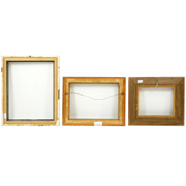 Lotto di 3 cornici in legno dorato ed ebanizzato, XX secolo, misura max cm 43x55