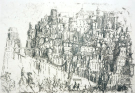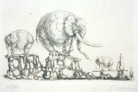 Lotto di 6 litografie, firmate, cm 11x8, entro un'unica cornice