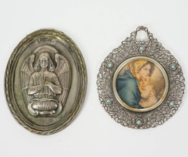 Lotto di due oggetti in argento ed una conchiglia argentata, misure max cm 8,5x7, peso dell'argento gr.30 circa