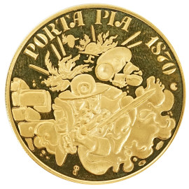 Medaglia in oro Centenario di Roma Capitale d'Italia, diametro cm 3,3, peso gr. 17,5, entro astuccio originale
