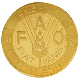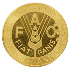 Medaglia in oro FAO, XX Anniversario 1945-1965, diametro cm 24,4, , peso gr. 8