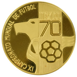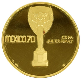 Medaglia in oro Mexico 70, IX Campeonato Mundial de Futbol, diametro cm 4,5, peso gr. 35, entro scatola originale