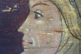 Profilo femminile, XX secolo, tempera su tavoletta, cm 24,2x21,5