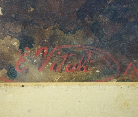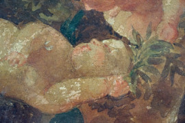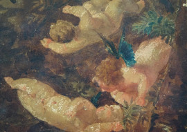 Putti, acquerello su carta, firmato e datato 1880, cm 27,2x26,2, entro cornice